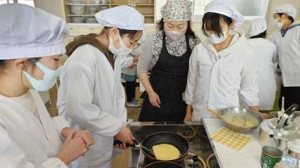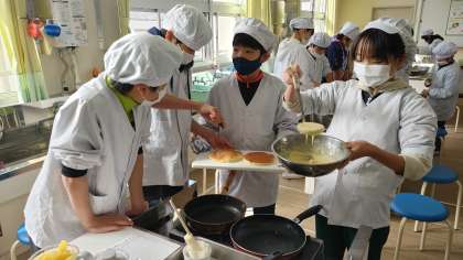 6年1組が家庭科室で調理実習をしました。