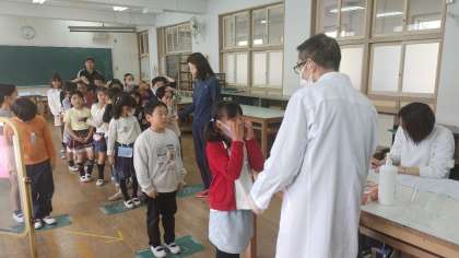 校医先生にお越しいただき、眼科の検診をしていただきました。