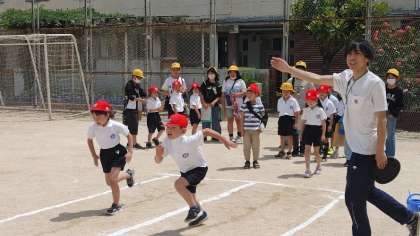 体育館と運動場にわかれて各種目に挑戦します。