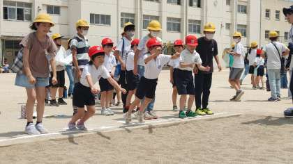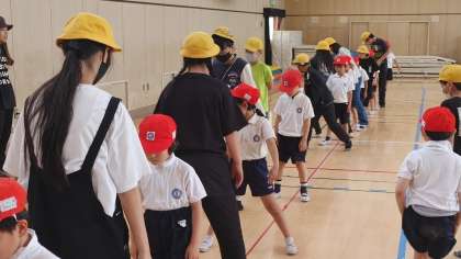 優しい6年生のリードで、にこにこの1年生でした。