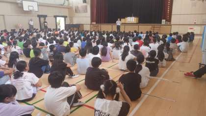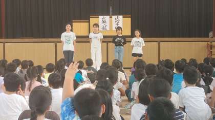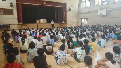 校長先生から、1学期の振り返りと夏休みの心構えの話がありました。