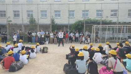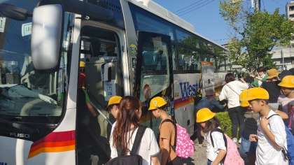 5年生が林間学習に出発しました。行き先はハチ高原です。