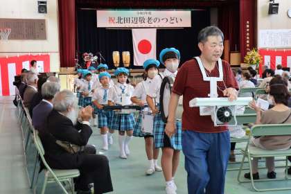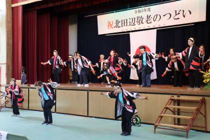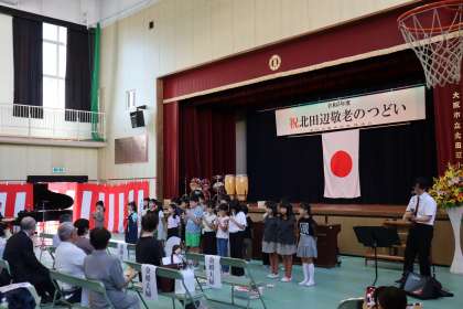 北田辺地域活動協議会主催の「敬老のつどい」が、北田辺小学校の講堂で開催されました。