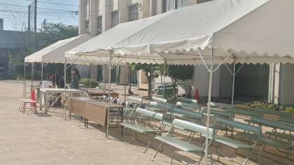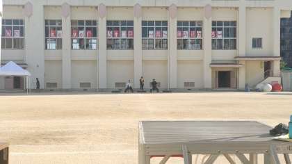 「運動会学年テープ」を左肩に貼り、南門より受付をしてご入校ください。また、「運動会学年テープ」により、演技、競技も優先して前方にてご観覧いただけますよう、譲りあいのご協力をお願いします。