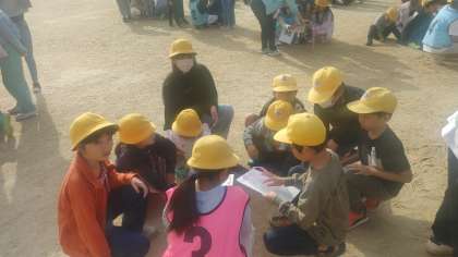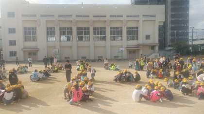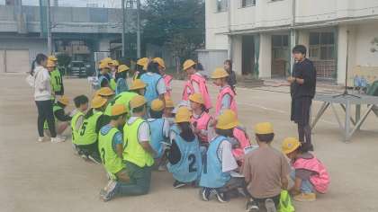 運動場で先週実施した、ふれあい遠足の表彰式がありました。