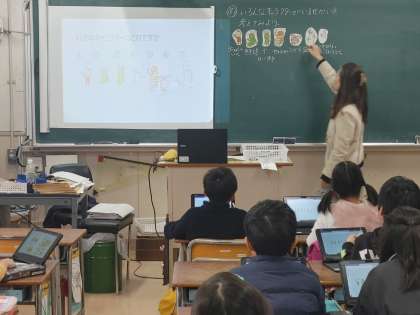絵本「みえるとか みえないとか」の読み聞かせを通して、様々なキャラクターがいる世界の関りを考えます。