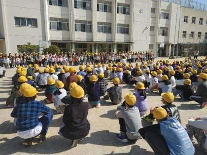 青空のもと、1年生との対面式がありました。