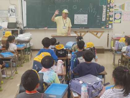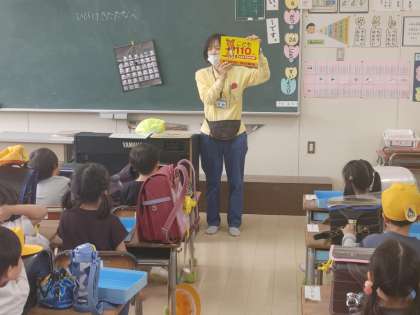 1年生の終わりの会の時、東住吉区役所のラビット隊にお越しいただきました。