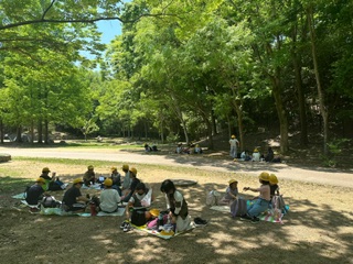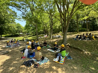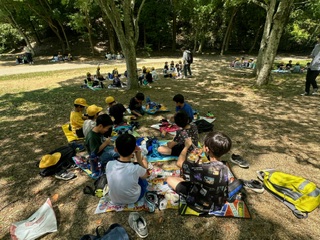 12時過ぎからお弁当スタートです。お弁当にお菓子にみんな楽しそうです。食べた後は片付けをして、ジャンボ滑り台で遊びます。