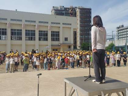 朝会の後、児童が校長室に集まり、観察会が始まりました。