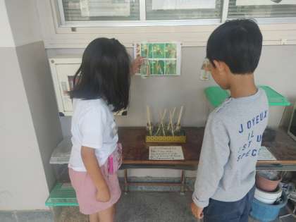 校長室では、ウスバキトンボのヤゴを観察しています。