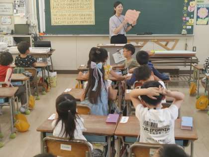絵本「大きいトンと小さいポン」の読み聞かせがあり、互いの良さを認め合うことの大切さについて学級で話し合いました。