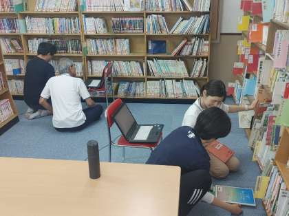 棚ごとにパソコンを活用して、図書を1冊ずつ取り出して、バーコードを読み取ります。