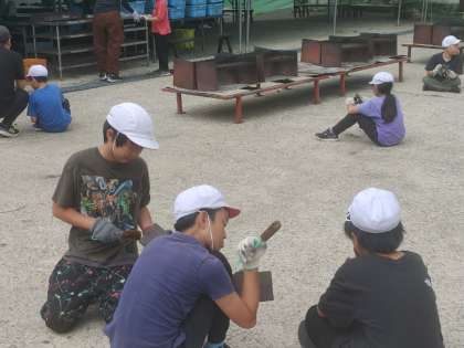 キャンプファイヤーや魚つかみ、アスレチックやカレー作りなど、描く場面はたくさん思いつきます。