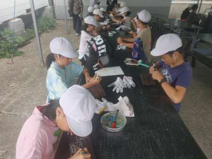 紐を通して準備が出来たら、ポスカで絵を描いたり、文字を入れたりして、作品に仕上げます。