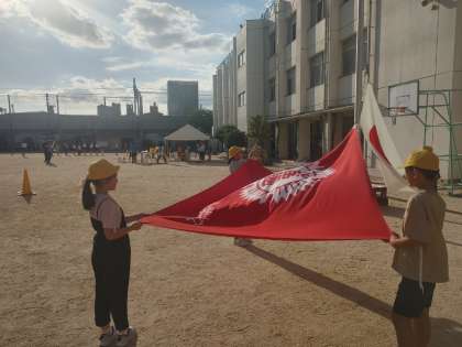 放課後、運動場では運動会の開会式と閉会式の練習がありました。