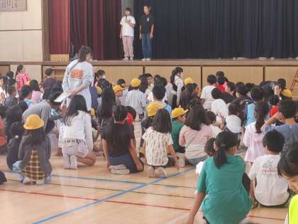 久しぶりに講堂に全校児童が集まり、児童集会が開かれました。