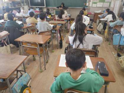 本日は、国語と社会、明日は、算数と理科と英語(5〜6年のみ)が実施されます。