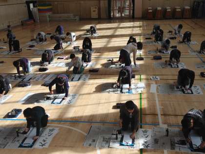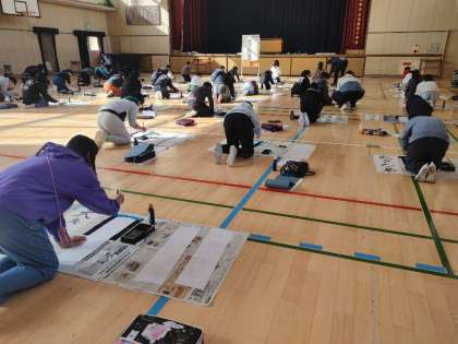 6年生が講堂で書き初めを行いました。