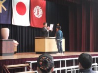 お昼休み、講堂に全児童が集まって、児童集会が開かれました。