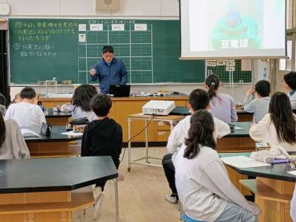 理科室で6年2組が公開授業をしました。