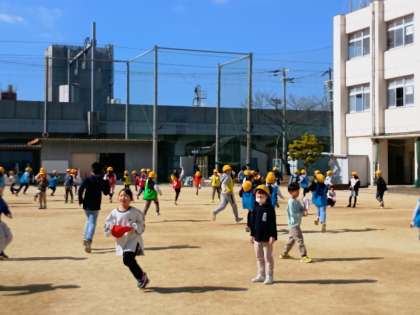 運動委員会による「ハンターからにげろ」が運動場で行われました。