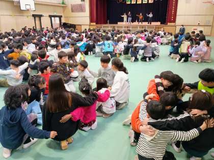 「1年生から5年生のおくる言葉」、合唱「僕らまた」が講堂に響き渡りました。