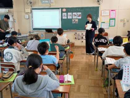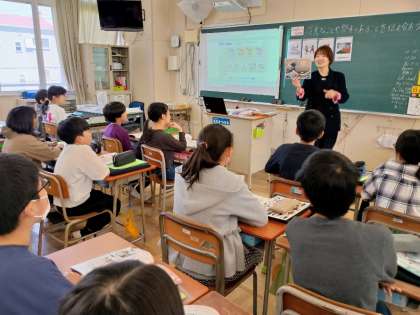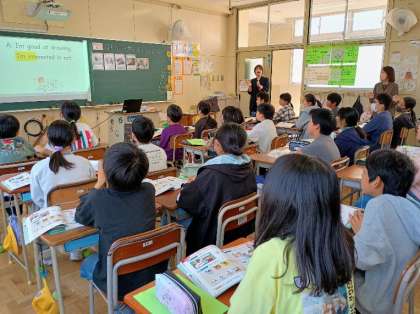 たくさんの先生に囲まれて、嬉しそうに学ぶ6年生でした。