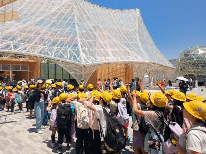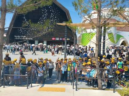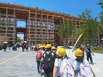 会場のシンボル「大屋根リング」にエスカレーターで登りました。