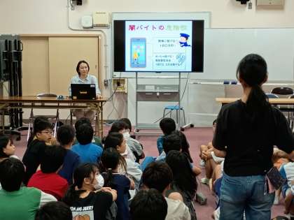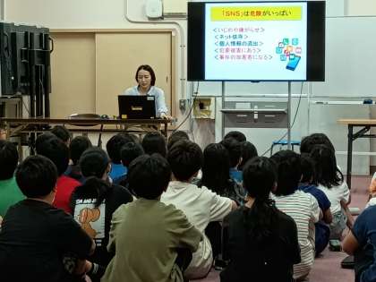特に「SNSは危険がいっぱい」では、いじめや嫌がらせ、ネット依存、個人情報の流出、犯罪被害にあう、事件の加害者になる等の身近な事案をもとに、注意しなければならないことを教えていただきました。