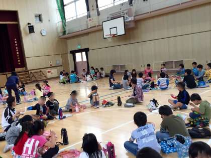 4年生と2年生は、ふれあいのペア班ということもあり、「仲を深めよう!」と一緒にお弁当を食べました。