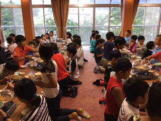 みんなが楽しみにしていた夕食です。食事係のお世話と合図で、「いただきます」