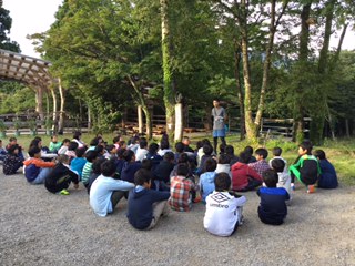 2日目の朝を迎えました。みんな元気です。朝の集い、そして、記念撮影のために、モニュメントに向かいます。このあと、朝食です。