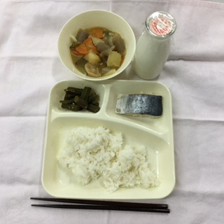 さごしの塩焼き じゃがいもと一口がんもの煮物 オクラのおかか炒め ごはん 牛乳