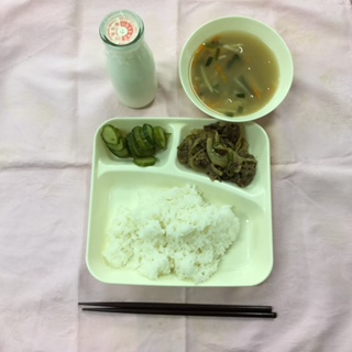 プルコギ トック あっさりきゅうり ごはん 牛乳