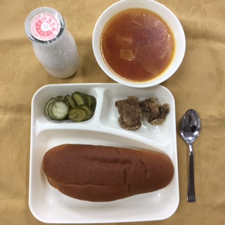ミラノ風カツレツ ミネストローネ きゅうりのサラダ パン 牛乳