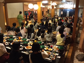 待ちに待った夕食です。「ここでしか食べられない食材ばかりです。用意をしてくださった方や食べ物に感謝していただきます」の食事係の挨拶を合図にみんなもうれつな食欲です。