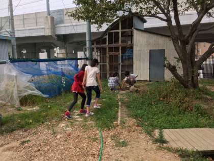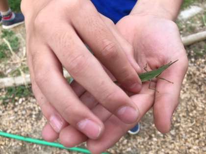 虫の声は、あまりきこえなかったのですが、観察中に、バッタが飛び出してきました。