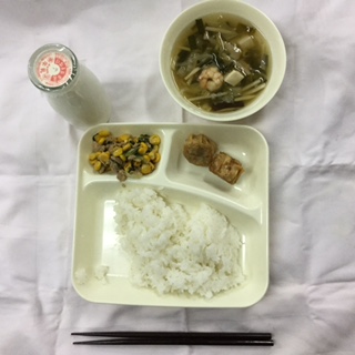 揚げシューマイ エビと豆腐のスープ 青梗菜とツナの炒め物