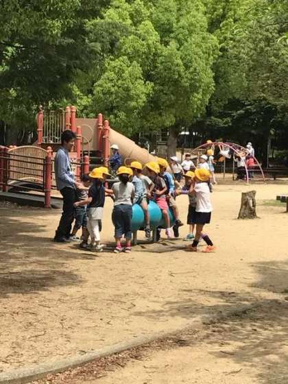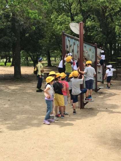 午前中はアスレチック遊具で元気いっぱい遊び、午後からは大芝生広場で紙飛行機を飛ばしたり、鬼ごっこをしたり、楽しい一日を過ごすことができました。