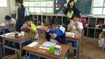 まず、野生のサルと動物園のサルの歯の様子を比べ、固いものを食べることで、唾液をしっかり出すことの大切さを学びました。