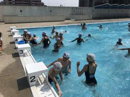 まず、校長先生から、けがなく事故なく楽しいプール学習にしましょうとお話がありました。