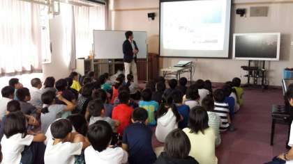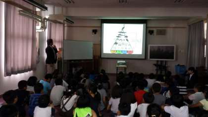 7月4日、瀬口先生に来ていただき、集会室でコウノトリについての学習会を行いました。