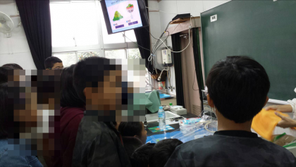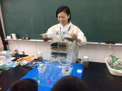 地球上には水がたくさんありますが、その中で飲み水などとして人が使えるのは0.01パーセントと知り、驚いている子が、たくさんいました。森林を育てることの大切さも、腐葉土を使っての実験を通してよく理解していました。