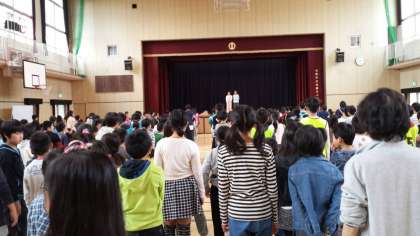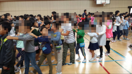 今日は、6年生が修学旅行でいないため、5年生がリーダーのビブズをつけて、1年から4年までをまとめました。朝早くから講堂で練習をしたり1年生を迎えにいったりと頑張っていました。