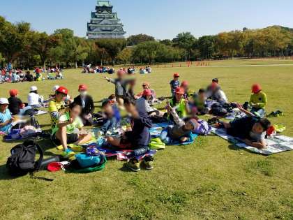 今年は大阪城公園に行きました。ふれあい班のみんなで9つのポイントを回りゴールをめざします。