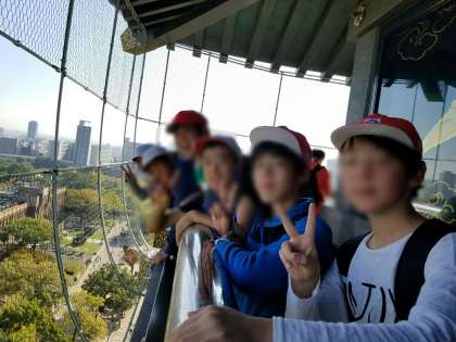 子どもたちは天守閣からの眺めや、豊臣秀吉にまつわる展示物を愉しんでいました。