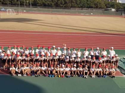 午前中は、ヤンマースタジアムで、50m走、100m走をしました。オリンピック選手も走るトラックはとても走りやすかったこと、50m走は追い風だったこともあり、多くの児童が好タイムの記録を出していました。