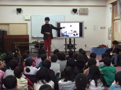 国語科の『「ゆめのロボット」を作る』を学習したばかりの子どもたちはこの日を心待ちにしていました。たくさんのロボットの動画や画像を見せていただき、すごいすごいと子どもたちは大喜びしていました。