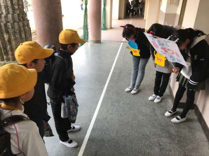 ろうかでは明るいあいさつの声が聞こえてきました。